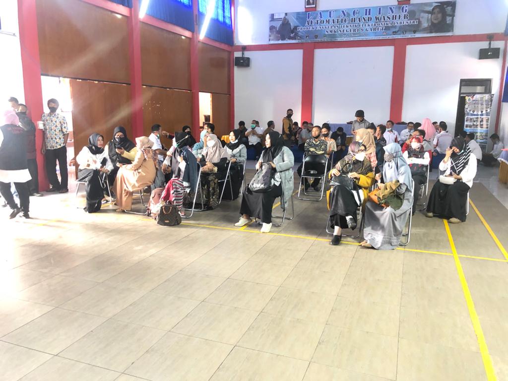kandaga.id – Ratusan guru, staf hingga jajaran komite SMKN 9 Garut mengikuti kegiatan vaksinasi covid 19 yang dilaksanakan di gedung serbaguna SMKN 9 Garut, Rabu (24/03/2021).