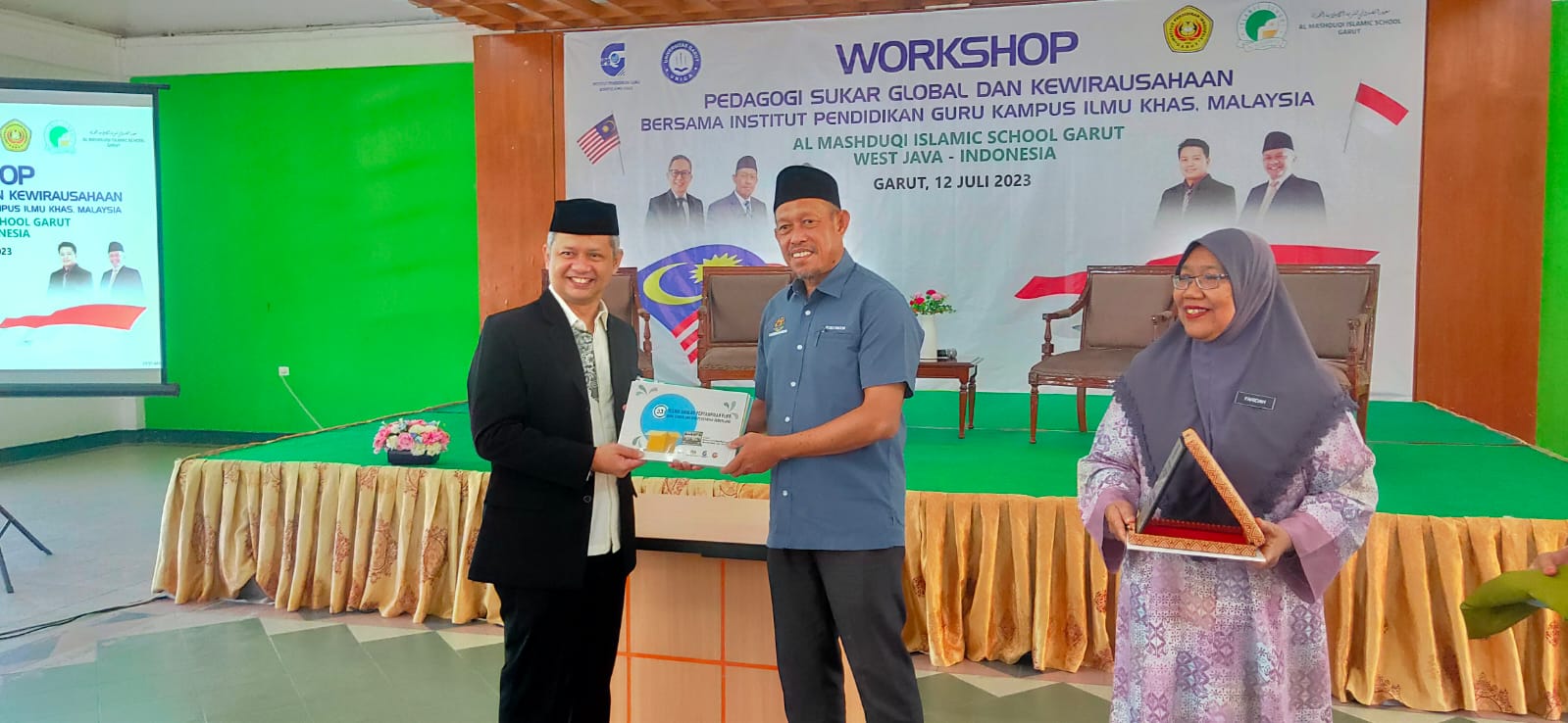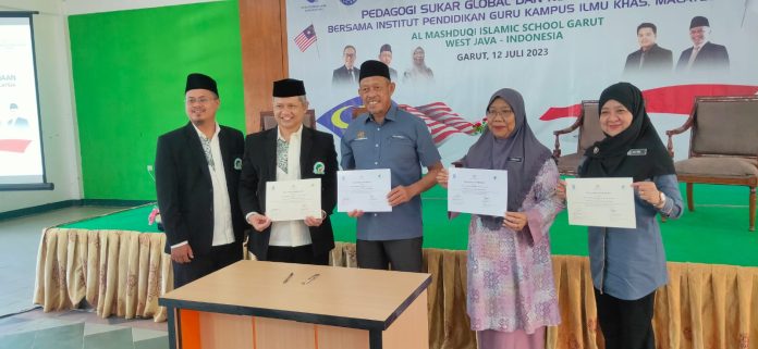 Penandatanganan nota kesepahaman antara Rektor Institut Pendidikan Guru Malaysia, Dr. Rosli bin Yacob dan Direktur Al Mashduqi Islamic School Garut H. Arif Bakhtiar, S.Th.I., ini berlangsung di Auditorium Drs. H. Dede Satibi Al Mashduqi Islamic School Garut, Jl. KH. Mashduqi No. 67, Kampung Pasawahan, RT. 2/RW. 2, Kelurahan Pananjung, Kecamatan Tarogong Kaler, Rabu (12/7/2023).
