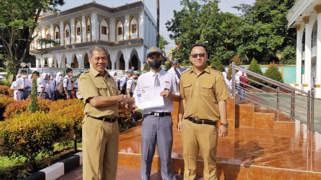 TARKID, (teraskandaga.com).- Diawal tahun 2023, SMKN 1 Garut telah melahirkan 24 prestasi tingkat lokal hingga Nasional, torehan ini merupakan bentuk nyata dari salah satu program unggulannya sebagai sekolah pencetak juara yang penyerahan medali, piala serta sertifikatnya kepada para siswa berprestasi tersebut dilakukan usai upacara Senin pagi yang dipimpin Kasat Binmas Polres Garut, AKP R. Hasan Sadikin, Senin (16/01/2023).