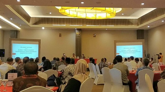 teraskandaga.com – Sebanyak 96 orang melakukan audiensi publik (Public Hearing) kepada tiga calon Kepala Dinas Pendidikan (Kadisdik) Kabupaten Garut di Fave Hotel, Jl. Cimanuk No. 338, Sukagalih, Kec. Tarogong Kidul, Jum’at (24/12/2021). Mereka hadir atas surat undangan Dinas Pendidikan Kabupaten Garut dengan surat nomor : 005/2422-Disdik.
