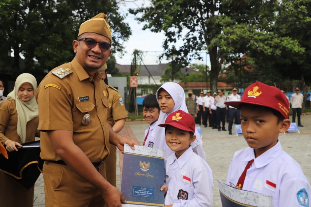 GARKOT, (teraskandaga.com).- Penampilan siswi SDN 7 Regol Kecamatan Garut Kota, Kafiya Kiasatina Risyadi sempat heboh di jagat media sosial saat borangan (bodor sorangan) di samping Wakil Bupati (Wabup) Garut, dr. Helmi Budiman pada apel gabungan, Senin (12/12/2022).