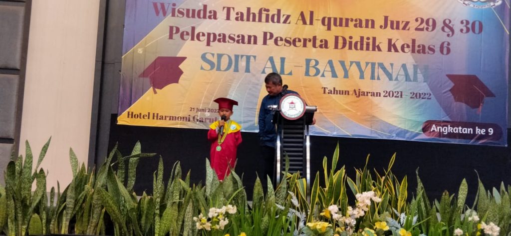 “Kita harapkan lulusan SD IT Al-Bayyinah, paling tidak khususnya untuk para laki-lakinya nanti dapat tampil di tengah-tengah masyarakat sebagai imam masjid dengan bacaan yang baik dan benar,” ucapnya.