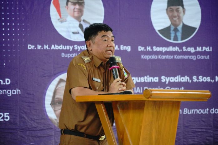 GARUT – Bupati Garut, Abdusy Syakur Amin, membuka Seminar Pendidikan bertema “Guru Bahagia, Pembelajaran Berkualitas: Strategi Meningkatkan Kesejahteraan dan Kreativitas Guru dalam Pembelajaran Triful” di Auditorium IAIPI Garut, Kecamatan Tarogong Kidul, Kabupaten Garut, Selasa (16/9/2025).