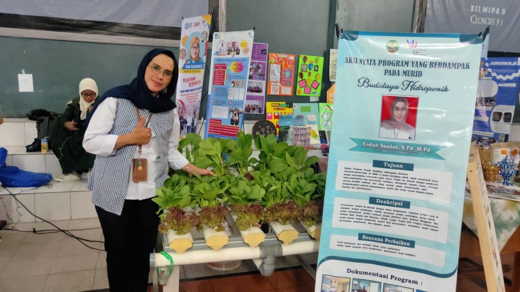 Sementara Endah Saadah, S.Pd., M.Pd., (SMAN 8 Garut) memajangkan hasil inovasinya yaitu Budidaya Hidroponik berbasis Chemoentrepreneurship, tujuannya membekali siswa dengan keterampilan wirausaha.