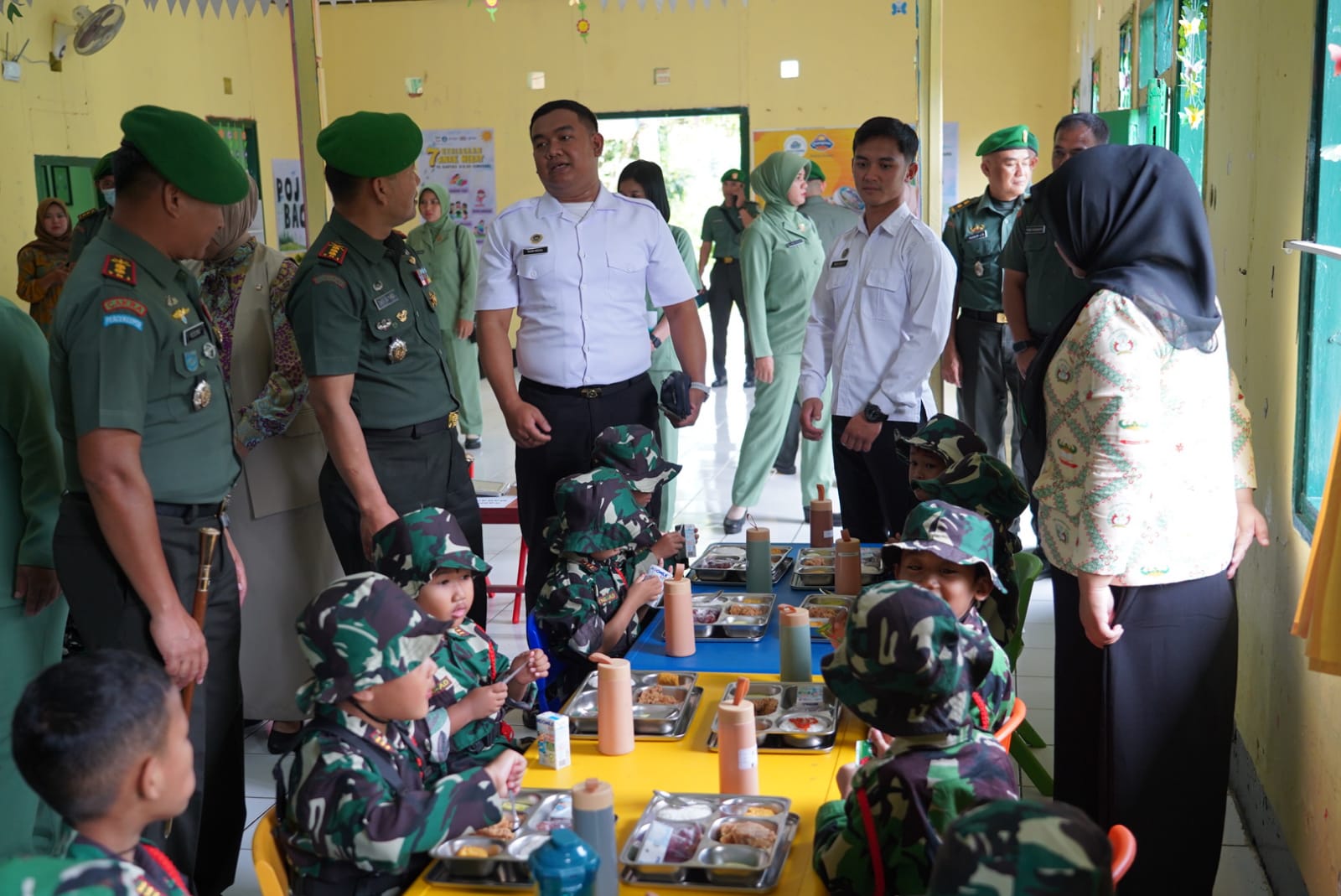 Sebagai bagian dari rangkaian kegiatan kunjungan, Danrem melaksanakan penanaman pohon di area depan Makodim 0610/Sumedang serta meninjau pelaksanaan program Makan Bergizi Gratis (MBG) di TK Kartika.