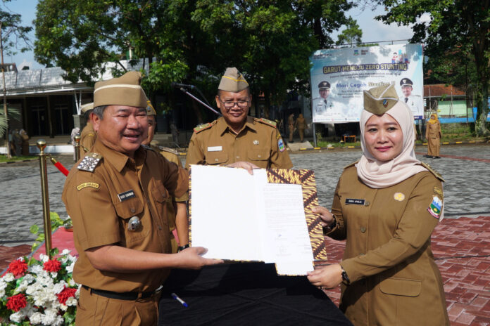 Hal itu terungkap pada pelantikan 63 PNS dalam Jabatan Pengawas dan 8 Fungsional di Lingkungan Pemerintah Kabupaten (Pemkab) Garut yang dilakukan Bupati Garut, Rudy Gunawan saat apel gabungan terbatas di Lapangan Sekretariat Daerah (Setda), Jalan Pembangunan, Kecamatan Tarogong Kidul, Senin (5/12/2022).