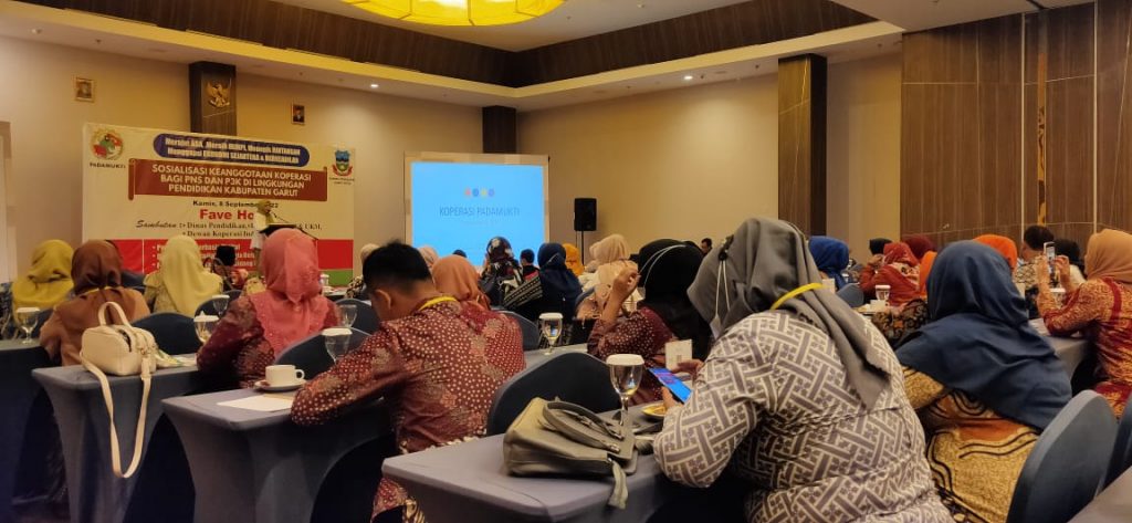 TARKID, (teraskandaga.com).- Sebanyak 112 guru dan kepala sekolah di lingkungan Korwil Bidang Pendidikan Kecamatan Garut Kota mengikuti sosialisasi keanggotaan koperasi bagi PNS dan PPPK di lingkungan Dinas Pendidikan Kabupaten Garut yang dilaksanakan di Kassiti, Fave Hotel, Jl. Cimanuk No. 338, Sukagalih, Kec. Tarogong Kidul, Kamis (8/9/2022).