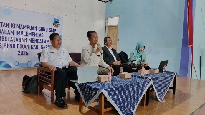 GARUT — Dinas Pendidikan Kabupaten Garut menyelenggarakan kegiatan Penguatan Kemampuan Guru SMP dalam Implementasi Pembelajaran Mendalam yang diikuti oleh 390 guru SMP se-Kabupaten Garut tahun 2026. Kegiatan ini berlangsung di GOR SMPN 2 Tarogong Kidul, Jalan Flamboyan No. 25, Kelurahan Jayaraga, Kecamatan Tarogong Kidul, Kabupaten Garut, Jawa Barat, Rabu (22/4/2026).