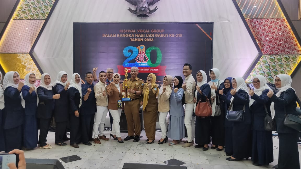 GARKOT, (teraskandaga.com).- Vokal group dari Korwil Bidang Pendidikan Kecamatan Garut Kota mewakili Dinas Pendidikan Kabupaten Garut berhasil meraih juara pertama pada Festival Vokal Grup antar Satuan Kerja Pemerintah Daerah (SKPD), Kecamatan dan Badan Usaha Milik Daerah (BUMD), dalam rangka Hari Jadi Garut (HJG) ke-210 tahun 2023.