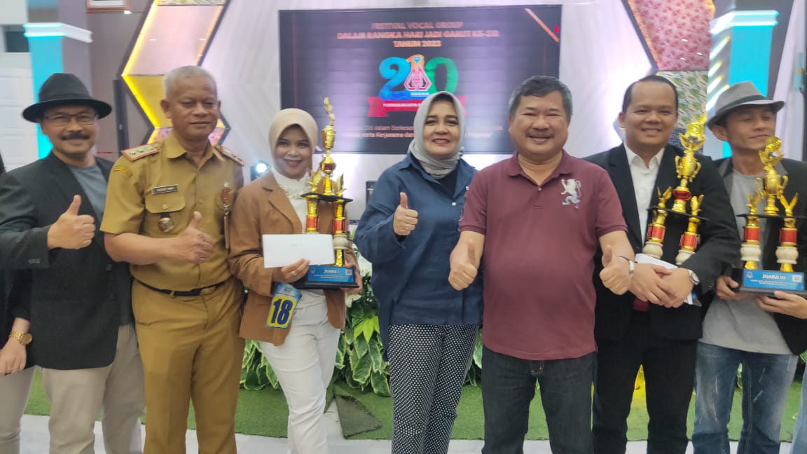 “Alhamdulillah, lomba vokal group dalam rangka HJG ke-210 telah selesai, terima kasih kepada dewan juri yang luar biasa. Dan semoga ada kegembiraan lain untuk berempati dari hasil sumbangan ini akan disumbangkan pembangunan satu unit rutilahu,” ucap Bupati Rudy.