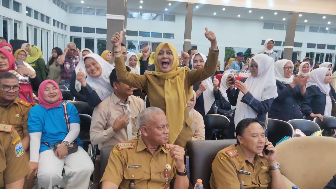 Sontak pemain dan para kepala sekolah serta pendukung lainnya, termasuk Korwil, Anita Istiani S.Pd., M.Pd., berteriak bersorak dan berpelukan rasa gembira pun tak terbendung.