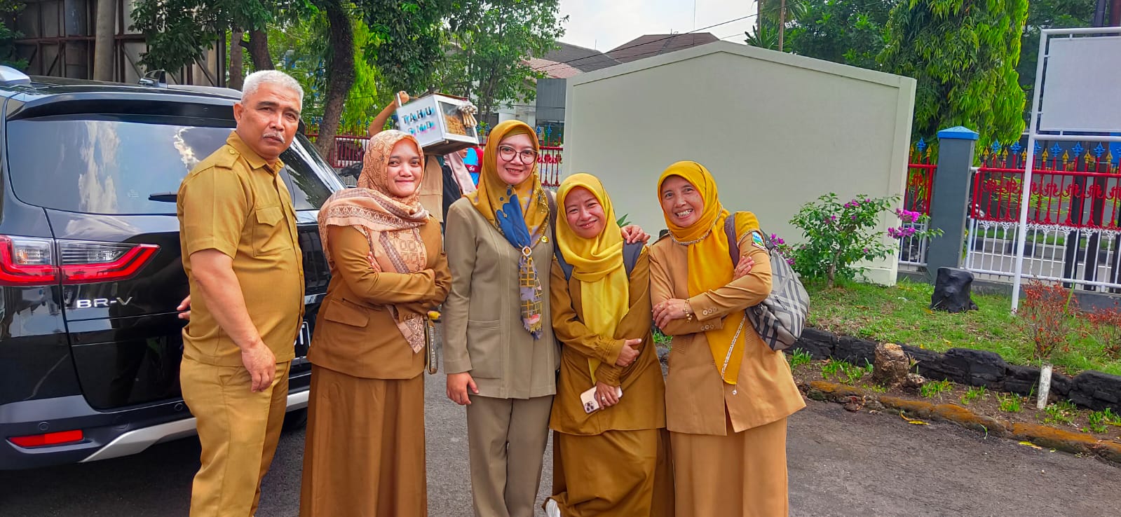 Yadi Supriadi, S.Pd., Kepala SDN 1 Kota Kulon, Kecamatan Garut Kota foto bersama Yusrika Nuraini, S.Pd., guru pembimbing Dede Siti Nur Maulida (Ngabodor Sorangan)., beserta guru-guru lainnya.