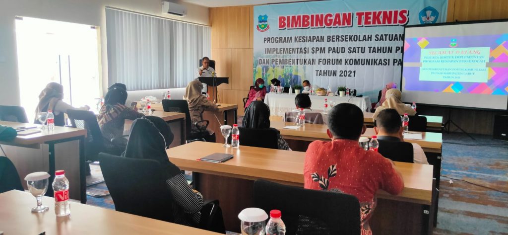 teraskandaga.com – Mulai tanggal 15 hingga 16 September 2021, Dinas Pendidikan Kabupaten Garut berkolaborasi dengan Ditjen Paud, Dikdas dan Dikmen Kemendikbud RI menyelenggarakan Bimbingan Teknis (Bintek) Program Kesiapan Bersekolah Satuan PAUD, Implementasi Standar Pelayanan Minimal (SPM) PAUD Satu Tahun Pra SD dan Pembentukan Forum Komunikasi PAUD-SD di Vila Rancabango, Rabu (15/09/2021).
