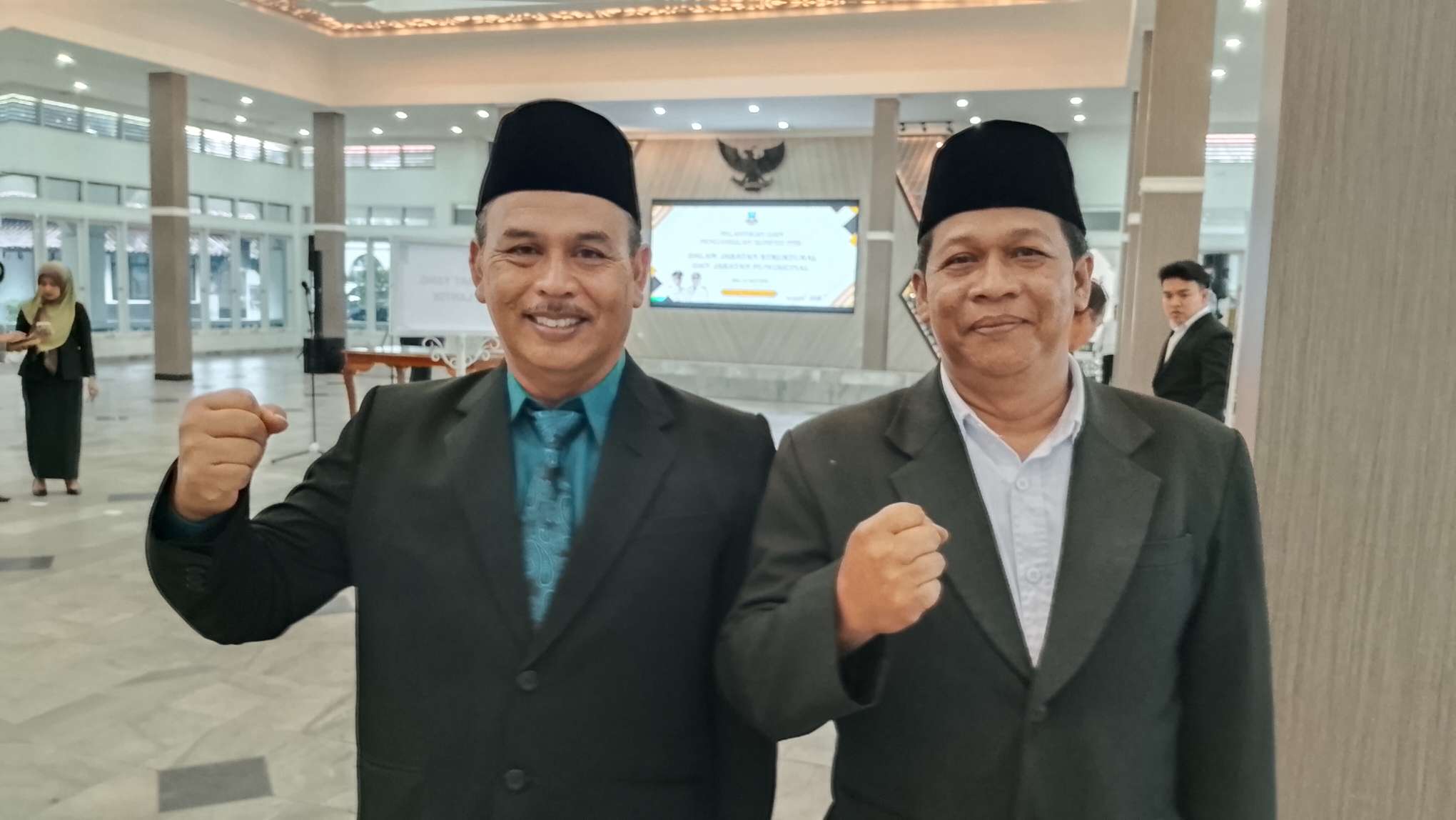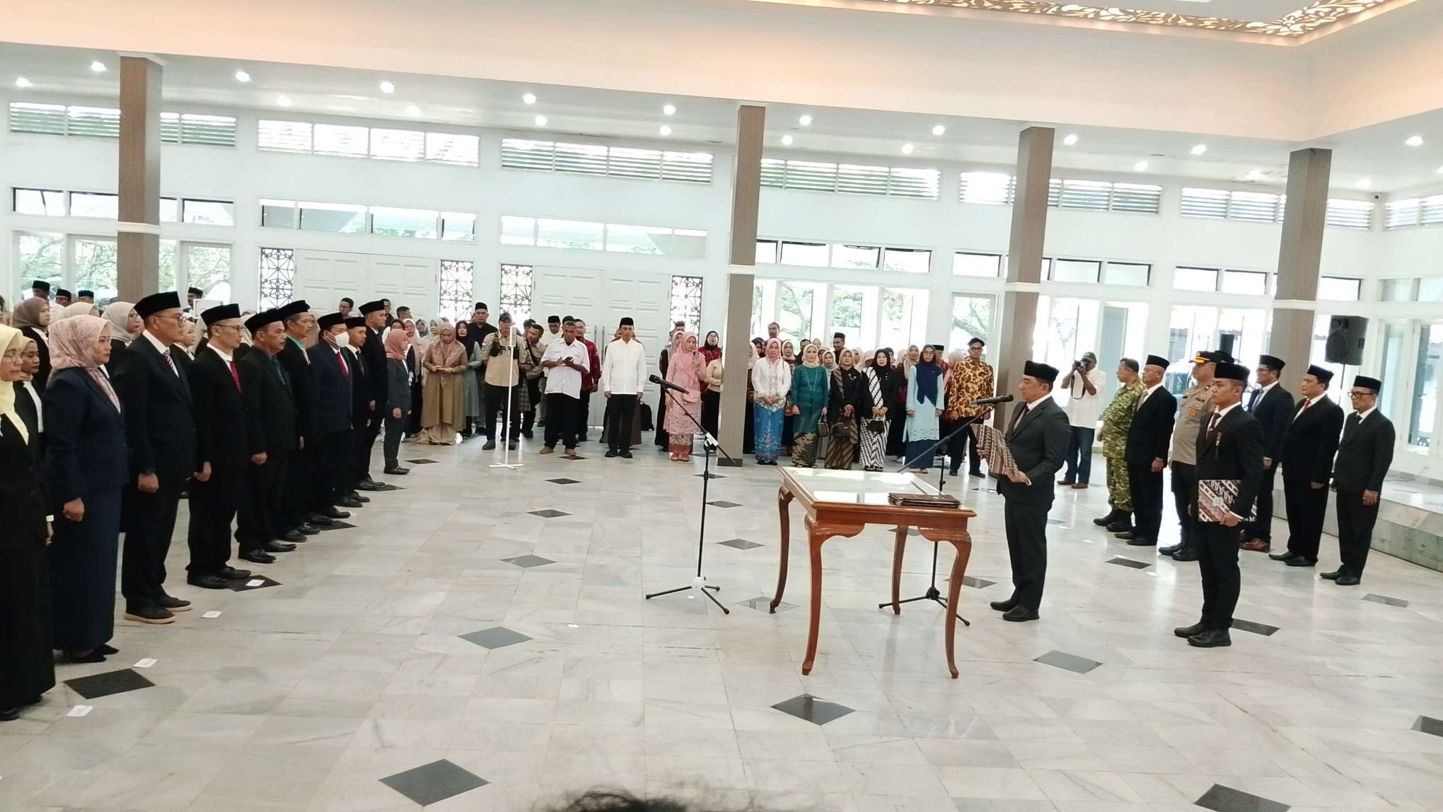 GARUT – Dua Aparatur Sipil Negara (ASN) di lingkungan Dinas Pendidikan Kabupaten Garut resmi mendapatkan kenaikan pangkat dari Pengawas Madya menjadi Pengawas Ahli Utama. Keduanya dilantik dan diambil sumpahnya oleh Bupati Garut, Abdusy Syakur Amin, di Gedung Pendopo, Jalan Kiansantang, Kecamatan Garut Kota, Rabu (22/4/2026) mulai pukul 13.00 WIB hingga selesai.