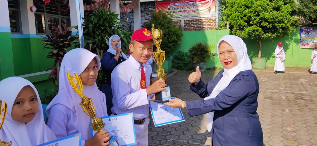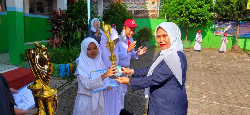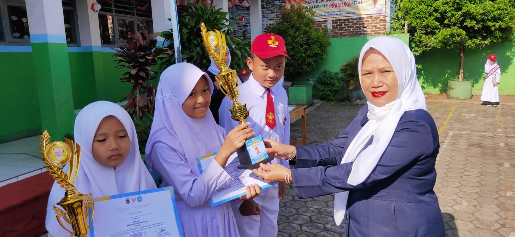 GARKOT, (teraskandaga.com).- Sebagai bentuk apresiasi, sekaligus memotivasi seluruh siswanya, Kepala SDN 3 Pakuwon, Rusyani, S.Pd.SD., menyerahkan piala dan sertifikat kepada tiga siswa peraih Festival Tunas Bahasa Ibu (FTBI) 2022 Tingkat Kecamatan Garut Kota.