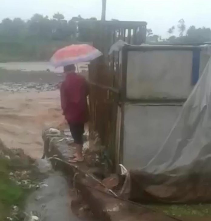 BAYONGBONG, (teraskandaga.com).- Derasnya hujan yang mengguyur wilayah kecamatan Bayongbong dan sekitarnya sejak Jumat sore (14/07) hingga hari ini mengakibatkan sungai Cimanuk yang membelah wilayah kecamatan Bayongbong meluap, dilaporkan sedikitnya dua unit rumah milik warga di desa Bayongbong terseret arus, sedangkan lima rumah lainnya terancam. Informasi tersebut disampaikan langsung oleh Camat Bayongbong, Federico Fernandes, Sabtu, (15/07/2022).