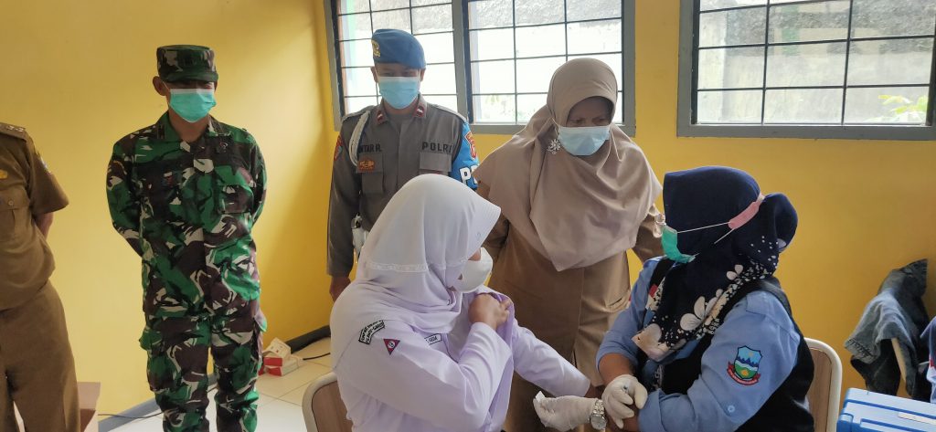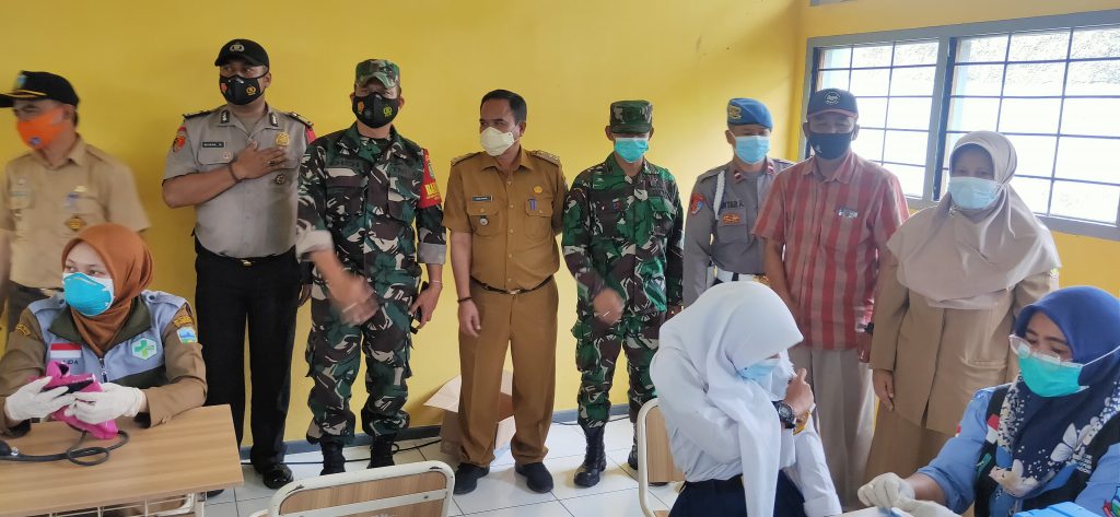Ketua Gugus Tugas Kecamatan Cilawu, Mekarwati bersama Kapolsek, Danramil 1114/Cilawu berserta jajarannya, anggota Polres Garut, Kepala Dinas Pendidikan Kabupaten Garut, dan Kapala Desa Margalaksana, mensupport pelaksanaan vaksinasi, sekaligus memantau kelengkapan sarana prasarana protokol kesehatan Covid-19 di SMPN 1 Cilawu.