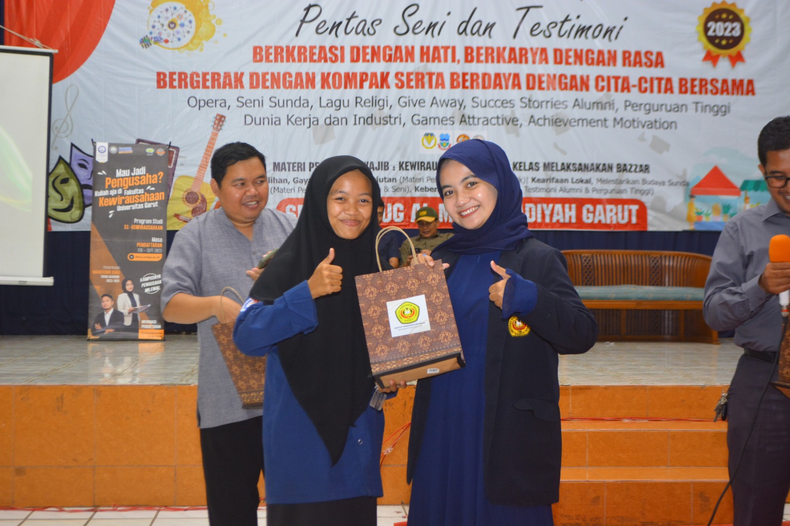 Terakhir Fakultas Kewirausahaan (FKWU) UNIGA yang dihadiri Anggun Oktavia Herlianti dan Soni serta 3 mahasiswi pendamping. Anggun bersama Soni menyampaikan video profil FKWU UNIGA yang merupakan kampus 4, serta memberikan penjelasan program-program yang ada serta peluang mendapatkan beasiswa serta jalur masuk di FKWU UNIGA. Memberikan beberapa souvenir ke para siswa maupun guru yang aktif bertanya dan menjawab pertanyaan dari nya. Di akhir sambutannya meminta foto bareng dan video singkat tentang FKWU UNIGA kampusnya pengusaha millenial.