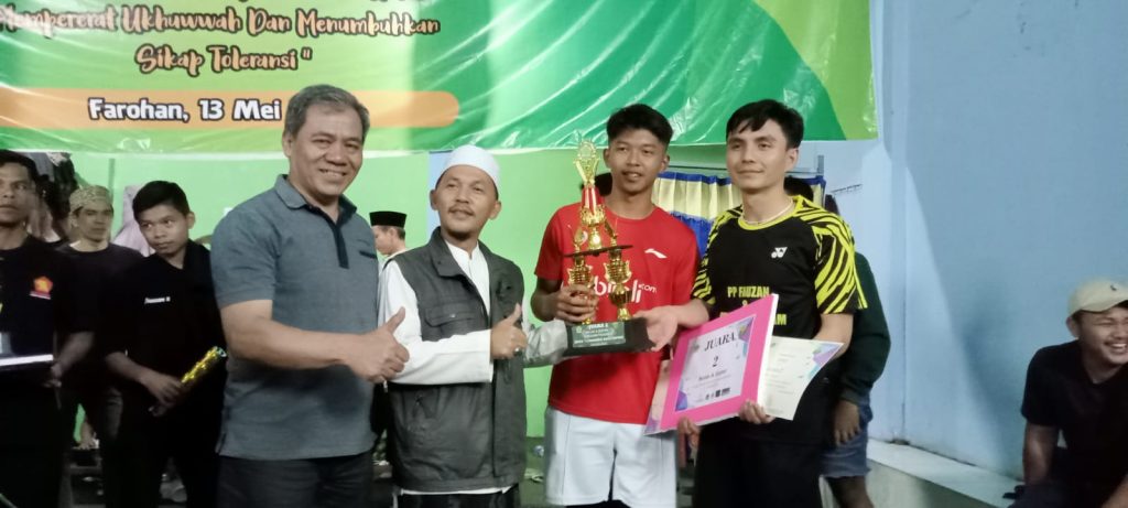 teraskandaga.com – Setelah mengalahkan pasangan Rexa/Rafi dari PB Fauzan, pasangan Aji/Rizal PB Tasikmalaya berhasil meraih juara pertama kelas A Super pada Turnamen Bulutangkis Farohan Fauzan 8 Open yang dilaksanakan selama tujuh hari mulai tanggal 21-28 Mei 2022.
