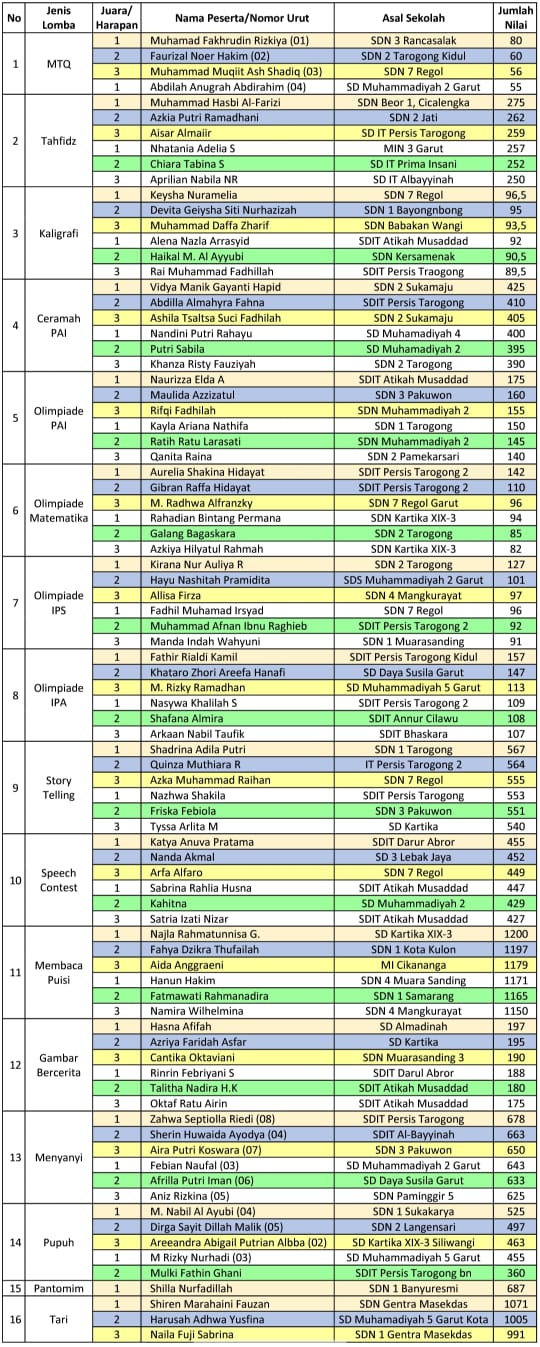 teraskandaga.com – Mengusung tema “Challenge for Achievement and Performance”, Bulan Filantropi 2024 yang digelar oleh SMPN 1 Garut untuk tingkat SD/MI se-Kabupaten Garut kali ini berbeda dari sebelum-sebelumnya, sebab pesertanya mencapai 378, dan jumlah itu merupakan jumlah terbanyak selama Achievement Challenge berlangsung, dan SD Persis Tarogong keluar sebagai Juara Umum.