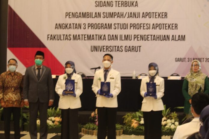 teraskandaga.com – Universitas Garut (Uniga) gelar Sidang Terbuka Pengambilan Sumpah/Janji Apoteker angkatan ke III bagi 40 Apoteker lulusan Fakultas Matematika dan Ilmu Pengetahuan Alam (FMIPA) di Hotel Harmony Jalan Cipanas Baru, Kecamatan Tarogong Kaler Garut, Jawa Barat, Rabu (31/3/2021).