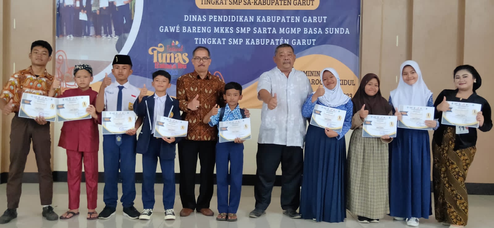 1. Krisna Arya Satria (SMPN 1 Kersamanah) meraih Juara 1 Maca Jeung Nulis Aksara Sunda Putra;