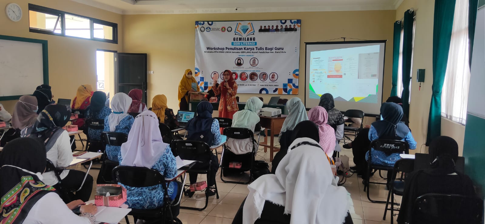 teraskandaga.com – Program GEMILANG kembali mengimplementasikan programnya, kali ini yang ketiga yaitu “Gemilang Seri Literatif/Literasi” dengan membina para guru-guru di lingkungan Korwil Bidang Pendidikan Kecamatan Garut Kota bekerjasama dengan Fakultas Pendidikan Islam dan Keguruan (FPIK) dan HIMA PGSD UNIGA menggelar Workshop Pelatihan Karya Tulis Ilmiah Bagi Guru di Aula FPIK UNIGA, Jl. Raya Samarang (Hampor) No. 52A, Kecamatan Tarogong Kaler, Selas (17/11/2021).
