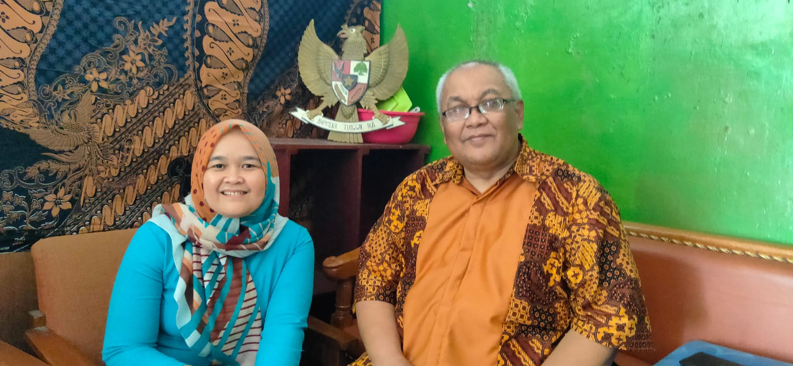 Gita Florensia, S.Pd., bersama H. Yusep Kartima, S.Pd., M.MPd., Kepala SDN 5 Sukamentri.