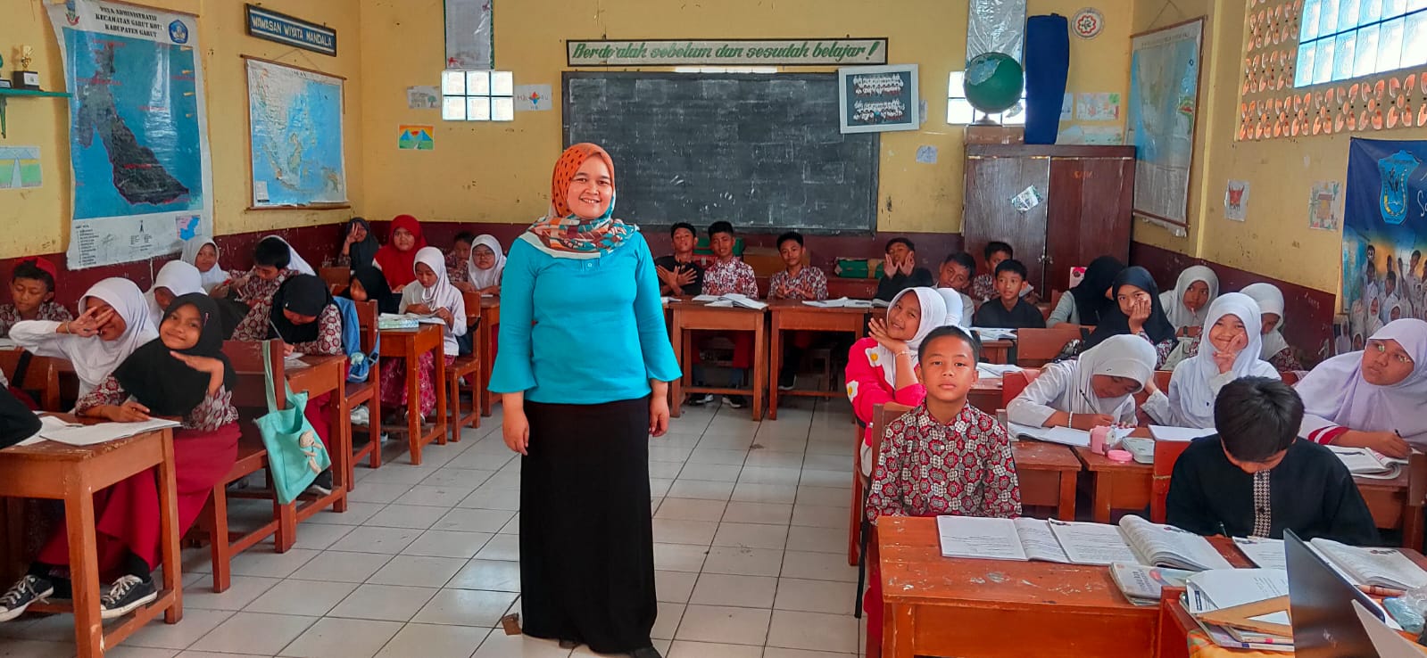 Gita Florensia, S.Pd., bersama siswa Kelas VI yang jadi kebanggaannya.