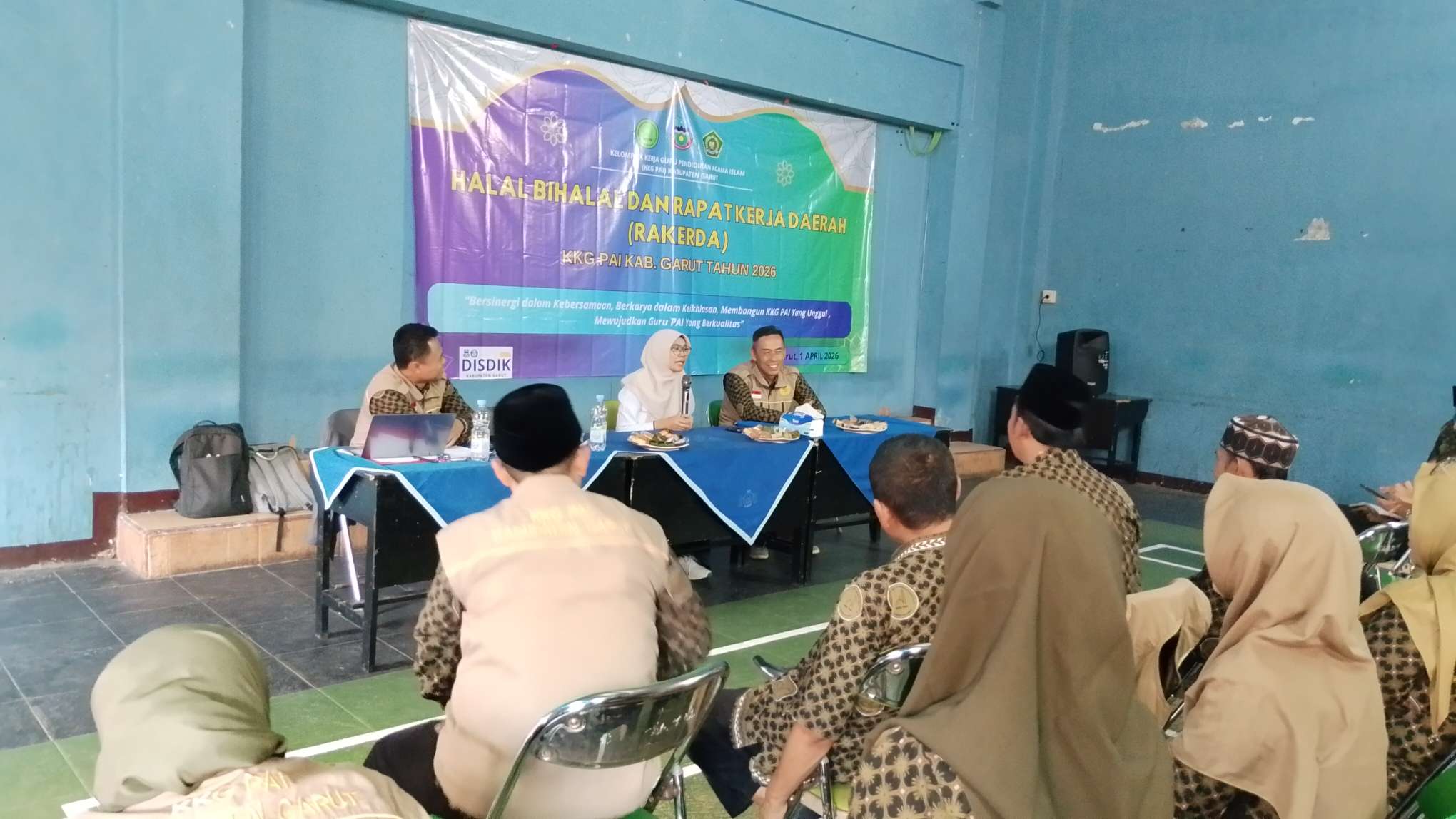 Garut – Kegiatan Halal Bihalal yang dirangkaikan dengan Rapat Kerja Daerah (Rakerda) Kelompok Kerja Guru Pendidikan Agama Islam (KKG PAI) Kabupaten Garut tahun 2026 berlangsung khidmat dan penuh semangat kebersamaan di Gedung PGRI Cabang Tarogong Kaler, Jalan Rancabango No. 6, Desa Cimanganten, Kecamatan Tarogong Kaler, Kabupaten Garut, Rabu (1/4/2026).