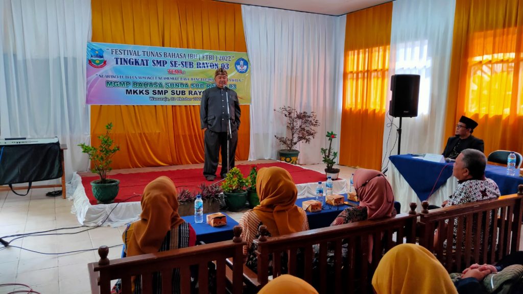 WANARAJA, (teraskandaga.com).- Mengusung tema “Ngahangkeutkeun Sumanget Ngamumule Basa Jeung Budaya Sunda di Sakola” (Meningkatkan Semangat Belajar Bahasa dan Budaya Sunda di Sekolah), MKKS SMP Sub Rayon 3 menyelenggarakan Festival Tunas Bahasa Ibu (FTBI) tingkat rayon di SMPN 1 Wanaraja, Jl. Talaga Bodas No.38, Wanamekar, Kecamatan Wanaraja, Minggu (2/10/2022).