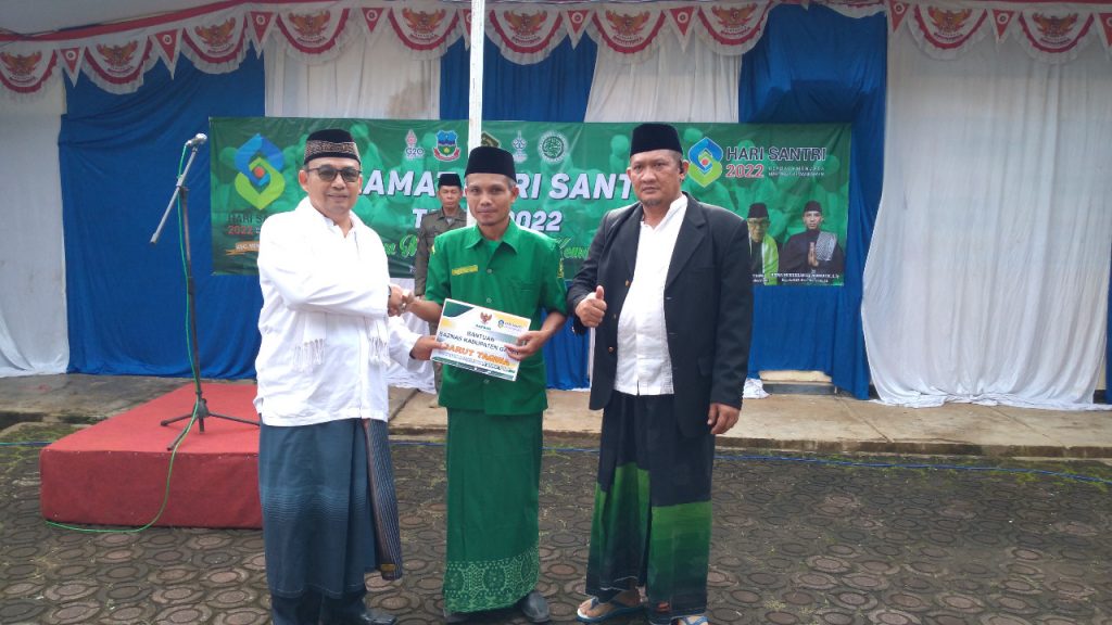 Di momen hari santri, Camat Mekarmukti menyerahkan bantuan rumah untuk guru ngaji secara simbolik.
