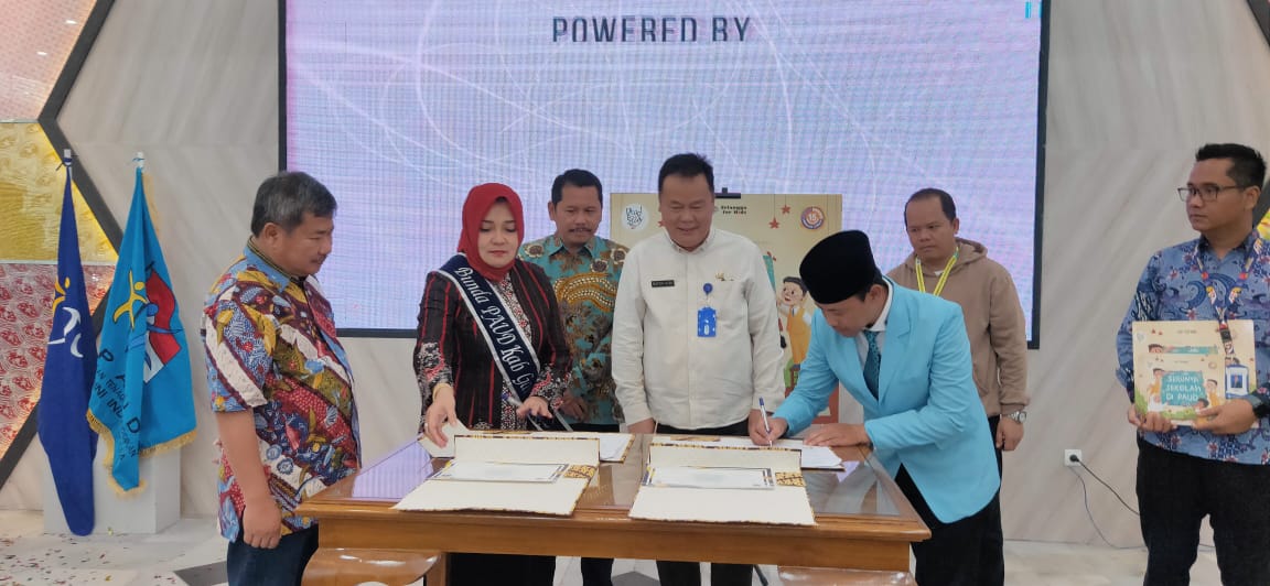 Dalam kesempatan ini juga dilakukan penandatanganan kerjasama implementasi PAUD perlindungan hak anak mendapatkan identitas diri antara HIMPAUDI dan Disdukcapil, juga Pokja Bunda PAUD dengan Disdukcapil yang disaksikan oleh Bupati Garut dan Kadisdik.