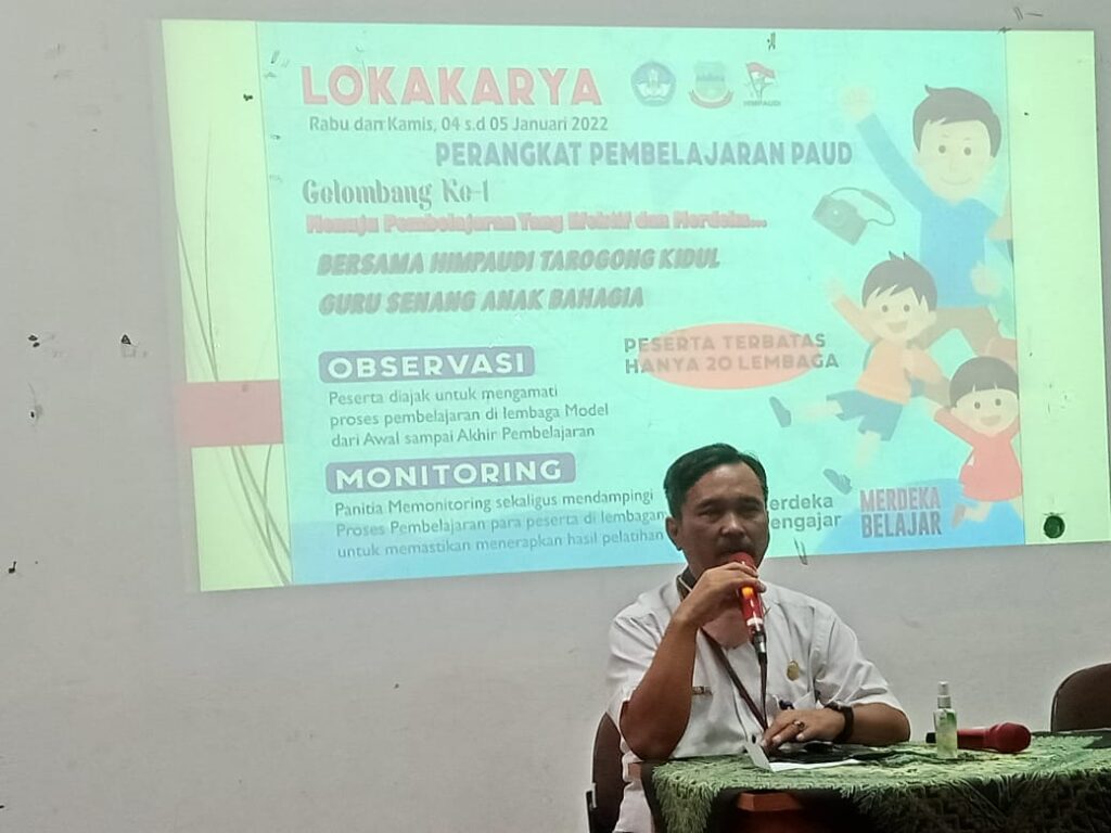 Lokakarya gelombang ke-1 ini diikuti 20 lembaga dan dibuka Korwil Bidang Pendidikan Kecamatan Tarogong, Edi Sutrisno, S.Pd., M.Pd., bersama Ketua Ikatan Penilik Indonesia (IPI) Kabupaten Garut, Mahmud Rochmat, S.Pd., M.Pd., serta Ketua PC HIMPAUDI Kecamatan Tarogong Kidul, Awan Suparwan, SH.I.
