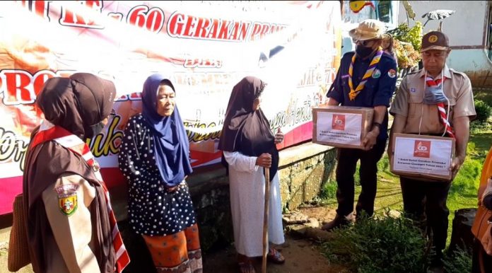 teraskandaga.com – Dalam rangka memperingati Hari Ulang Tahun Gerakan Pramuka ke-60 serta Kemerdekaan Republik Indonesia ke-76, Gerakan Pramuka Kwarran Cisompet mengelar bakti sosial, Sabtu (7/8/2021).