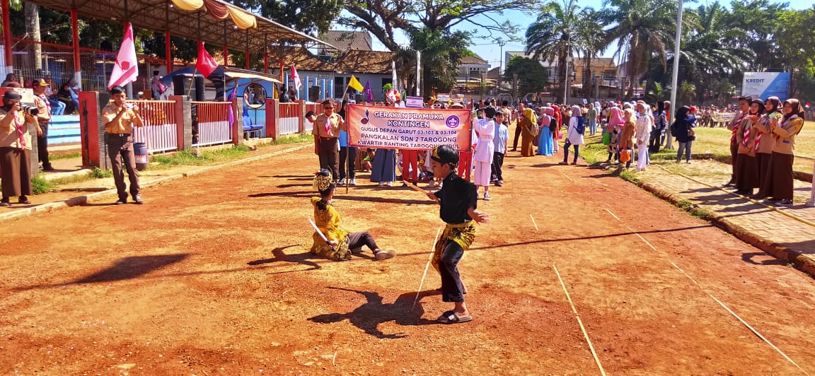 teraskandaga.com – Mengusung tema “Dengan Peringatan Hari Pramuka ke-62, Mari Kita Wujudkan SDM yang Professional dan Berwawasan Kebangsaan”, Gerakan Pramuka Kwartir Ranting Tarogong Kidul menggelar upacara Hari Pramuka ke-62 sekaligus Dirgahayu Republik Indonesia ke-78 di Lapangan Sarana Olahraga Merdeka Kerkhof, Senin (14/8/2023).