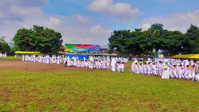 Sebanyak 1.525 anak dari 44 TK yang tergabung dalam Ikatan Guru Taman Kanak-Kanak Indonesia-Persatuan Guru Republik Indonesia (IGTKI-PGRI) Cabang Tarogong Kidul memperagakan manasik haji di lapangan Makorem 062/Tn, Jl. Bratayudha Kelurahan Regol, Kecamatan Garut Kota, Kamis (20/10/2022).