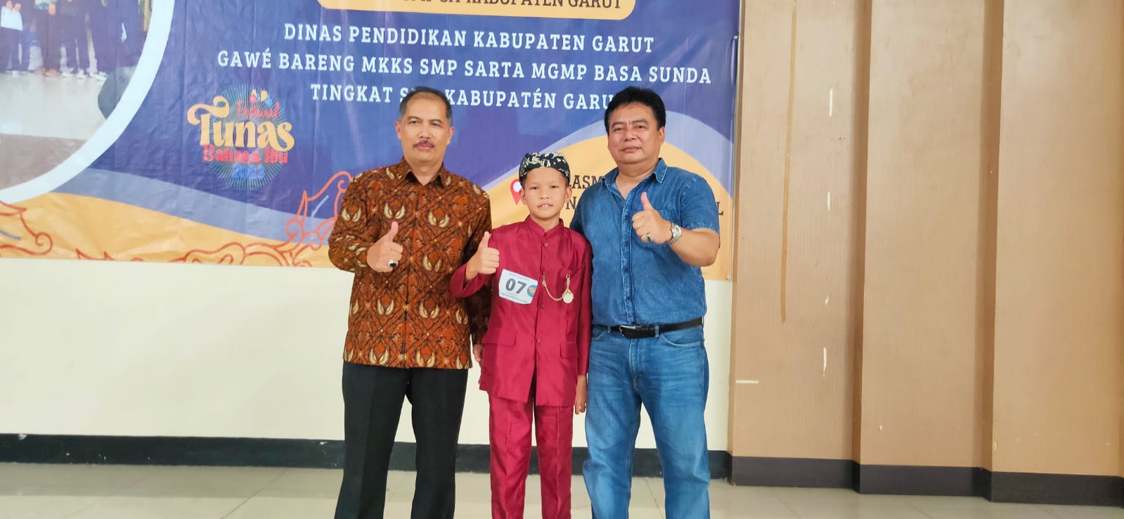 H. Mohamad Yusuf, M.Pd., Kapala Bidang SMP Dinas Pendidikan Kabupaten Garut, dan M. Yusuf juara Nembang Pupuh Putra serta Rd. Yusup Satria Gautama, Kepala SMPN 1 Cilawu/Ketua MKKS SMP Kabupaten Garut.