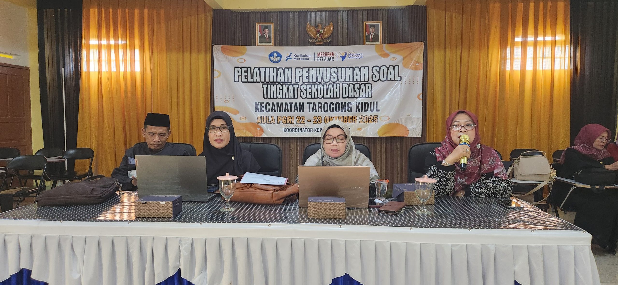 GARUT — Koordinator Kepala Sekolah (K2S) Kecamatan Tarogong Kidul menggelar pelatihan penyusunan kisi-kisi dan pembuatan soal tahun 2025 bagi guru Sekolah Dasar se-Kecamatan Tarogong Kidul. Kegiatan berlangsung selama dua hari, Rabu–Kamis (22–23 Oktober 2025), di Gedung Serbaguna PGRI Tarogong Kidul, Jalan Perum Bojong Kaliki No. 4, Kelurahan Pataruman, Kabupaten Garut.