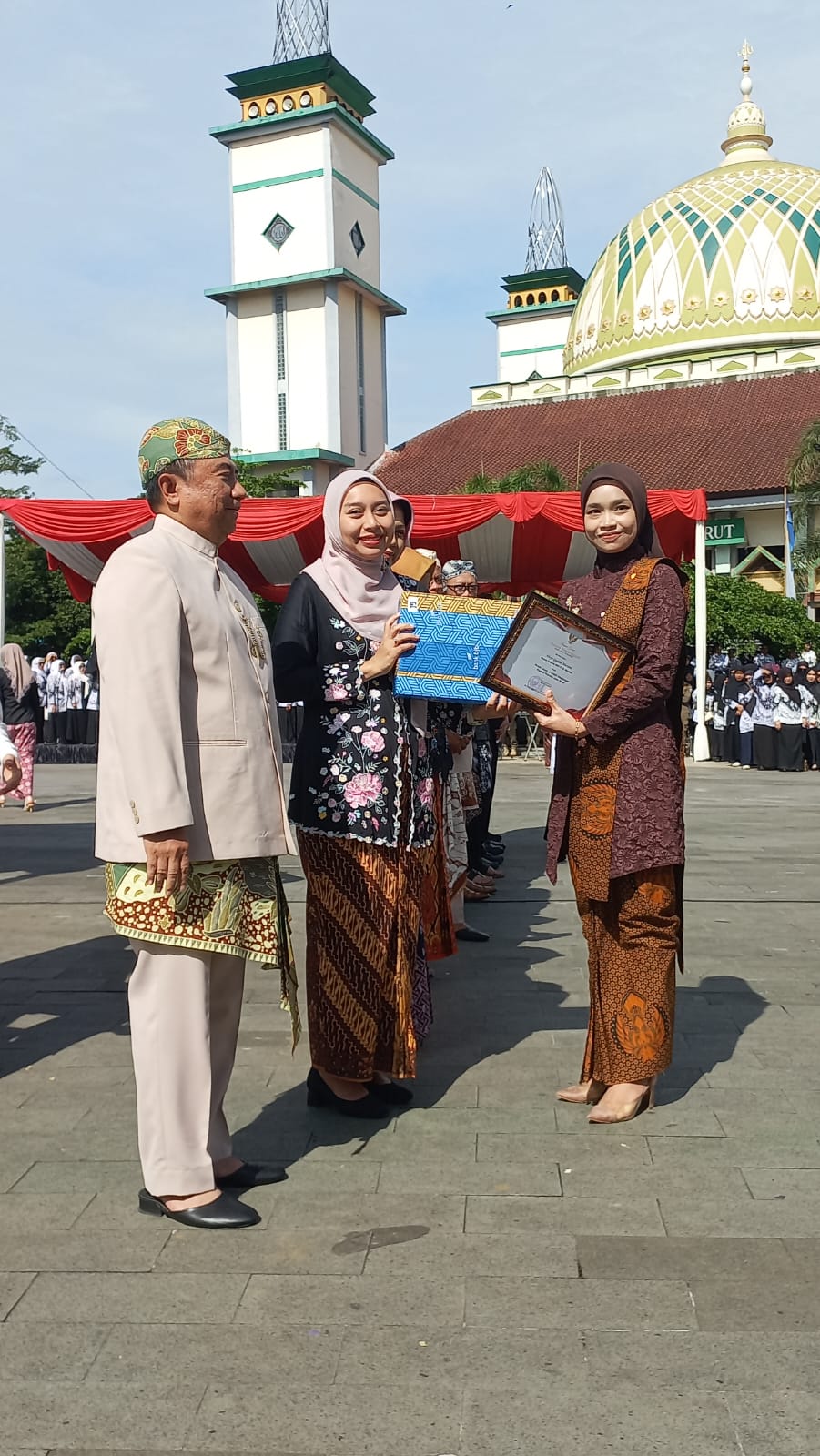 Penyerahan piagam penghargaan diserahkan langsung oleh Bupati Garut, Bapak Dr. Ir. H. Abduy Syakur Amin, M. Eng., IPU, kepada Kepala Sekolah SMP IT Al Mashduqi Garut Ibu Nispi Gustia Nurani, S.Pd., M.M. disaksikan oleh Ibu Wakil Bupati Garut, Bapak Sekretaris Daerah Garut beserta para pimpinan Forkopimda Kabupaten Garut.