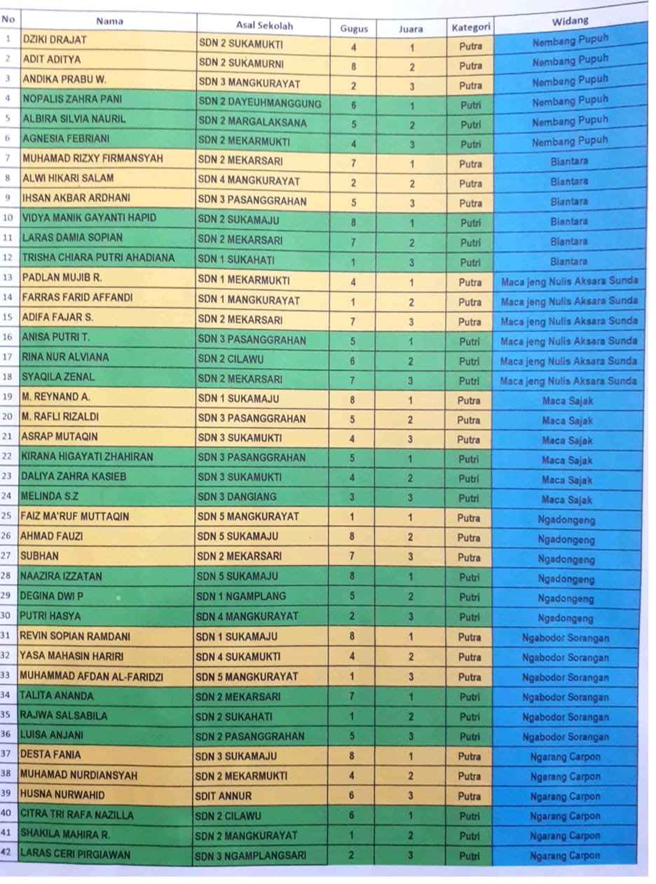 Berikut duta Kecamatan Cilawu yang akan tampil di FTBI tingkat Kabupaten Garut 2023 :