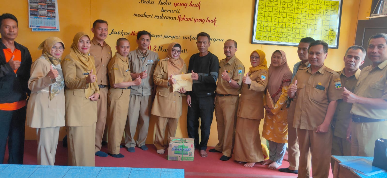 Penyerahan bantuan tersebut dilakukan di ruang kerja Kepala SDN 2 Margawati pada Senin (11/9/2023), dengan disaksikan oleh pemilik rumah, Ketua RW setempat dan pihak Kelurahan Margawati.