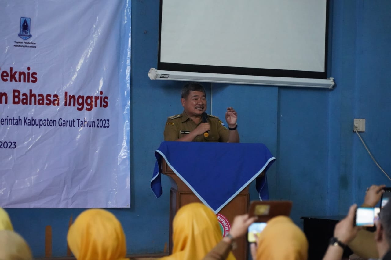 Pelatihan peningkatan kemampuan berbahasa Inggris dilaksanakan dari Senin-Rabu, 24-26 Juli 2023 ini dibuka oleh Bupati Garut, Dr. H. Rudy Gunawan, SH., MH., MP., dengan dilaksanaan oleh Yayasan Pendidikan Adiluhung Nusantara (YPAN) bekerjasama dengan Asosiasi Pemerintah Kabupaten Seluruh Indonesia (APKASI).