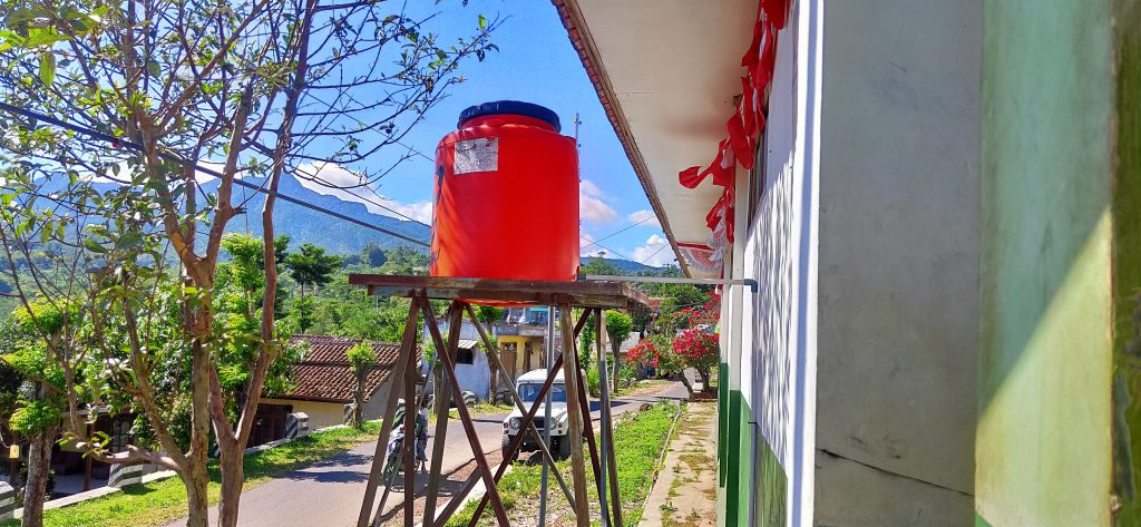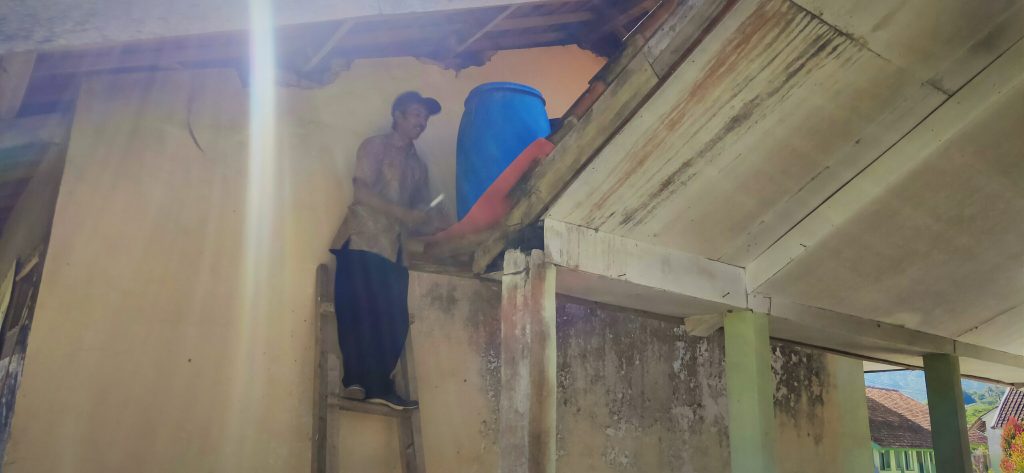 “Untuk mengisi bak penampungan air kami membelinya dari PDAM seharga 250.000 per 4000 liter,” ungkap Aris usai memasang dua bak penampung dekat dengan ruang kerjanya, dilanjutkan mengukur dan memasang paralon untuk pengaliran air.