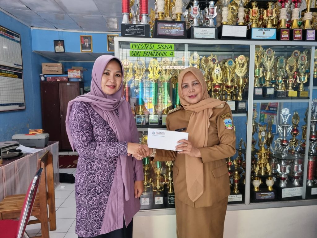Korwil Bidang Pendidikan Kecamatan Garut Kota, Anita Istiani, S.Pd., M.Pd., menerima titipan sumbangan dari keluarga besar SDIT GIS Prima Insani Garut, Senin (18/7/2022).