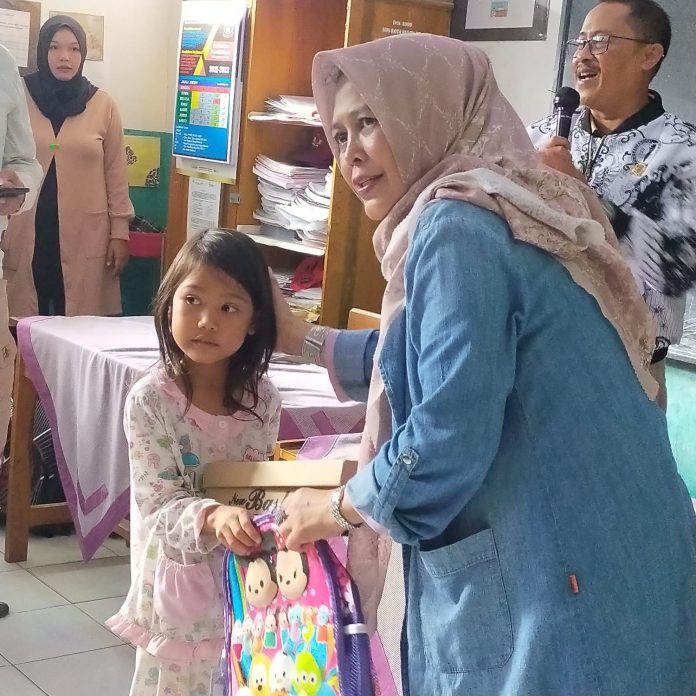 Garut Kota, Anita Istiani, S.Pd., M.Pd., memberikan bantuan di SDN 3, 4 Kota Kulon, Minggu (17/7/2022).