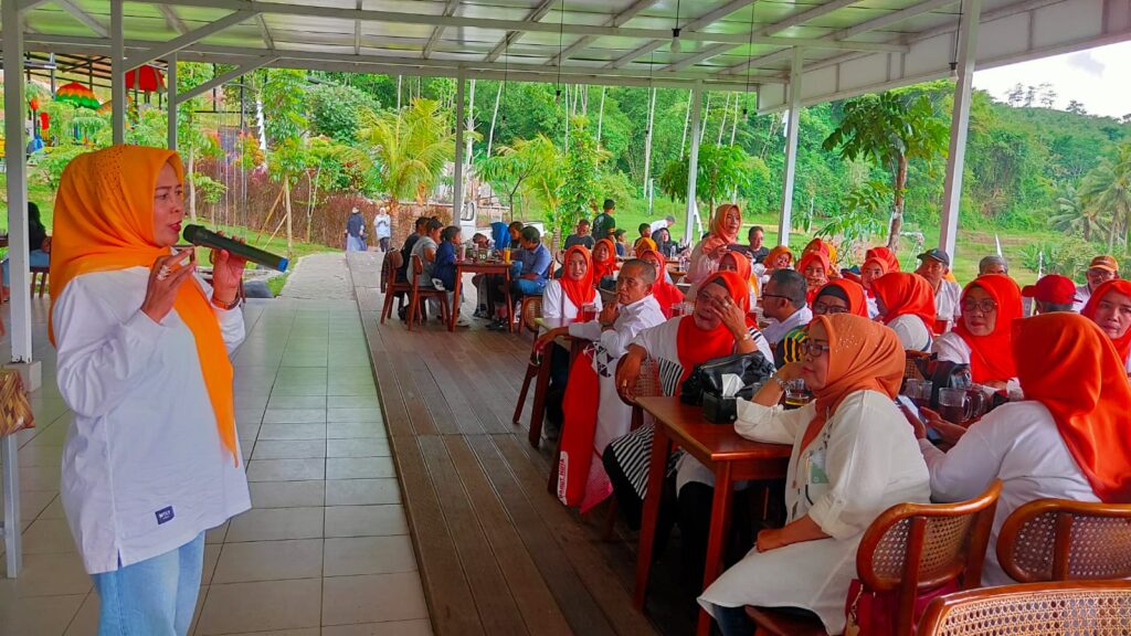 CIBIUK, (teraskandaga.com).- Mengenakan pakaian warna putih ditambah ibu-ibunya berkerudung orange, sebanyak lebih kurang 63 orang di lingkungan Korwil Bidang Pendidikan Kecamatan Garut Kota, menghadiri rapat bulanan sekaligus healing di Antapura De Djati Cibiuk di Jalan Raya Cibiuk, Desa Cibiuk Kaler, Kecamatan Cibiuk, Selasa (3/1/2023).