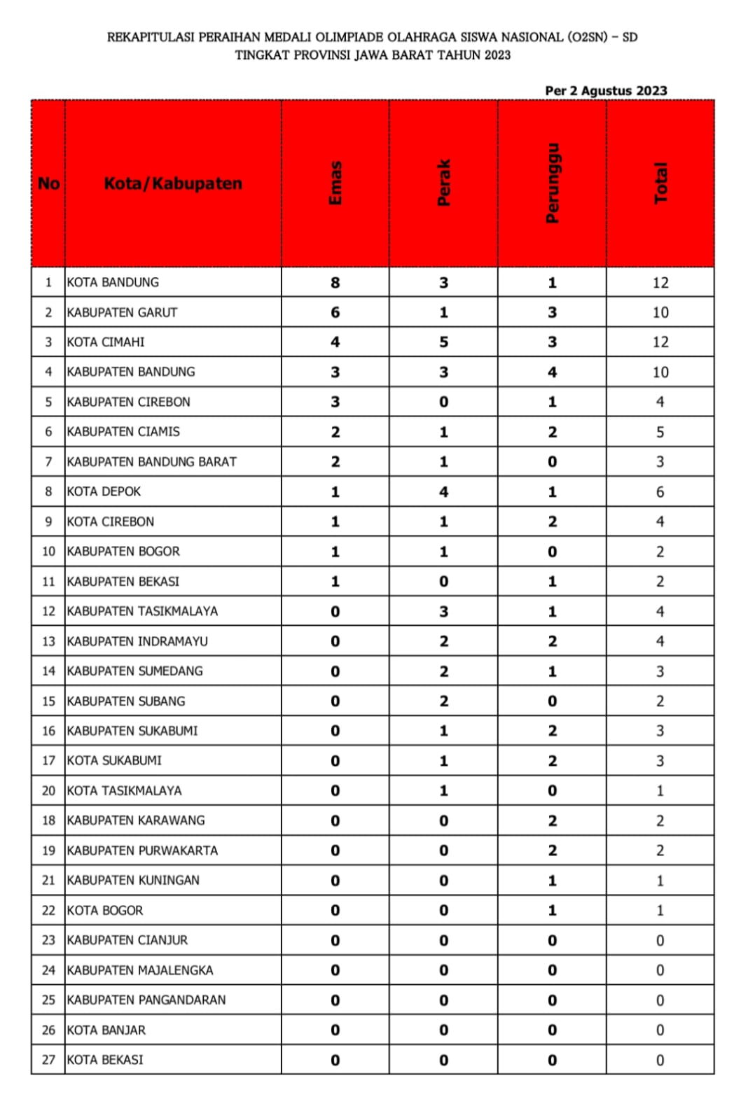 Korwil Garut Kota Sumbang 6 Medali Emas O2SN-SD Tingkat Jawa Barat 2023