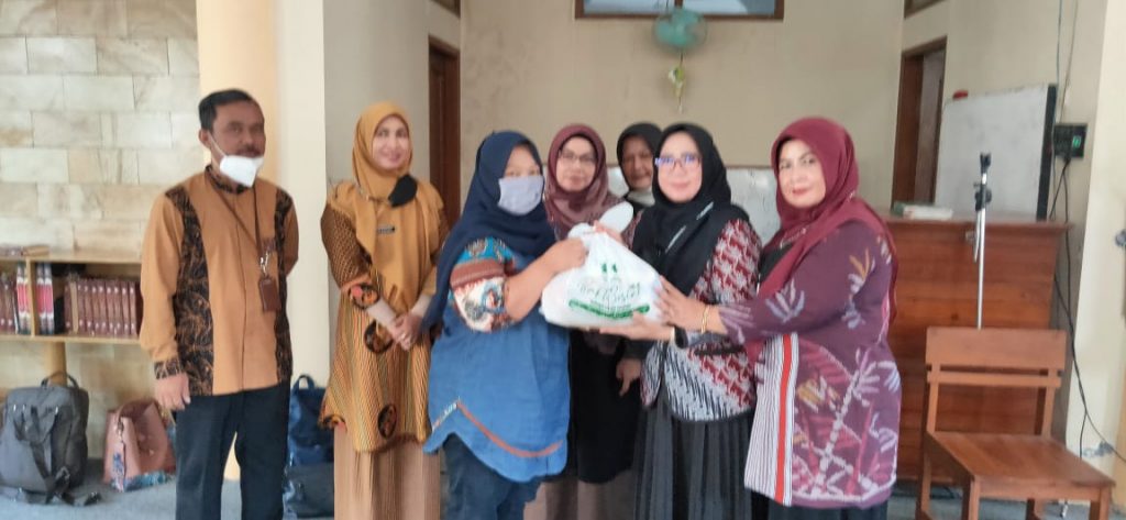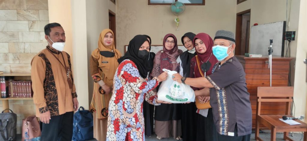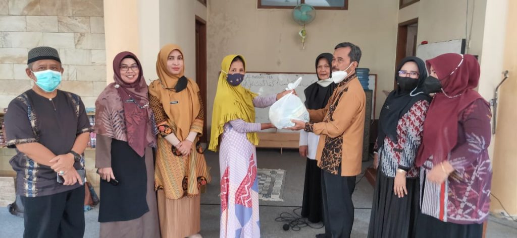 Secara simbolis bantuan sembako di serahkan Korwil, Edi Sutrisno, S.Pd., M.Pd., Korwas Dedah Maryonah, M.Pd., pengawas Titin Surtini, M.Pd., dan Ketua Yayasan An-Nabawi, H. Asep Zakaria dalam Mesjid dan Madrasah Al-Aziz di Jl. Guntur Melati No.2, Haurpanggung, Jum’at (22/4/2022).