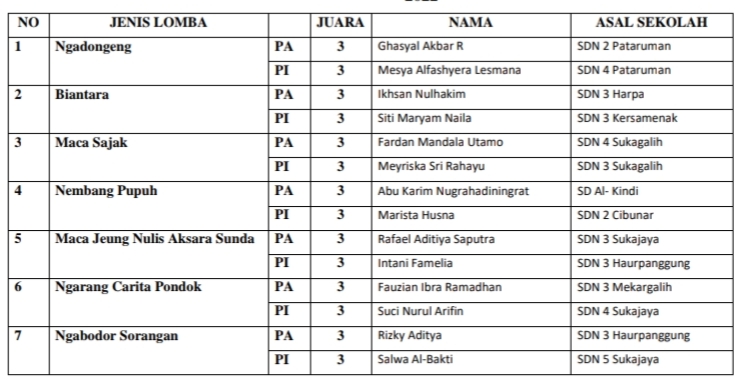 Pelepasan siswa ini ditandai dengan penyerahan piagam dan piala serta uang kadeudeuh dari Korwil sebagai bentuk apresiasi kepada 14 juara pertama, 14 juara kedua, dan 14 juara ketiga.